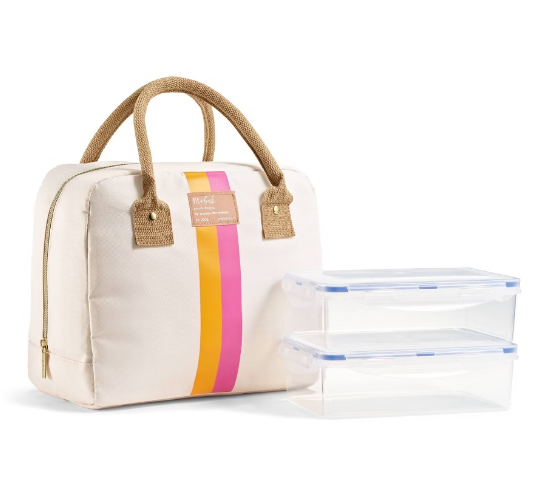 3 layers of thermal insulation | zipper closure | padded cotton-webbed handles – comfortable carrying grip |includes 2 containers BPA-free, microwave, freezer, and dishwasher safe | 25 x 20 x 15 Cm