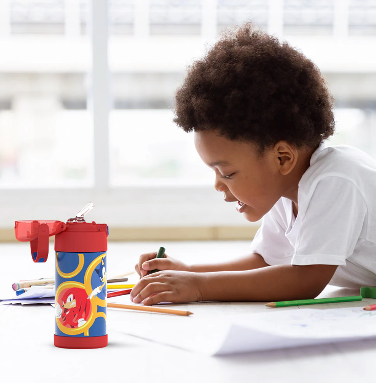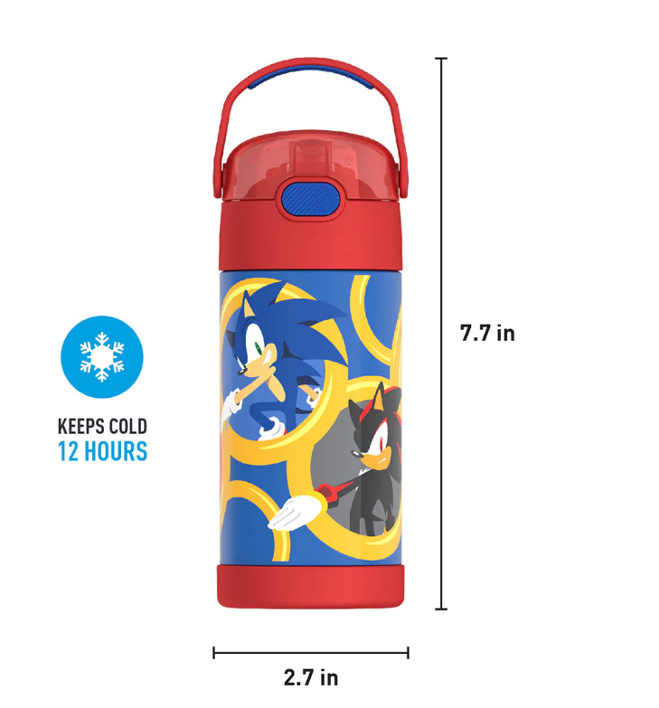 Thermos™ vacuum insulation technology |12 Hours cold | Stainless steel | Push button lid with pop-up straw | Sweat-proof exterior | carry handle easy to grip