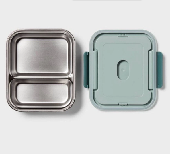 Leakproof & BPA-Free | Durable Stainless Steel | Removable ice pack| Dimensions: 6.4 x 17.8 x 20.3 cm | 2 divided sections | Removable lid with latches
