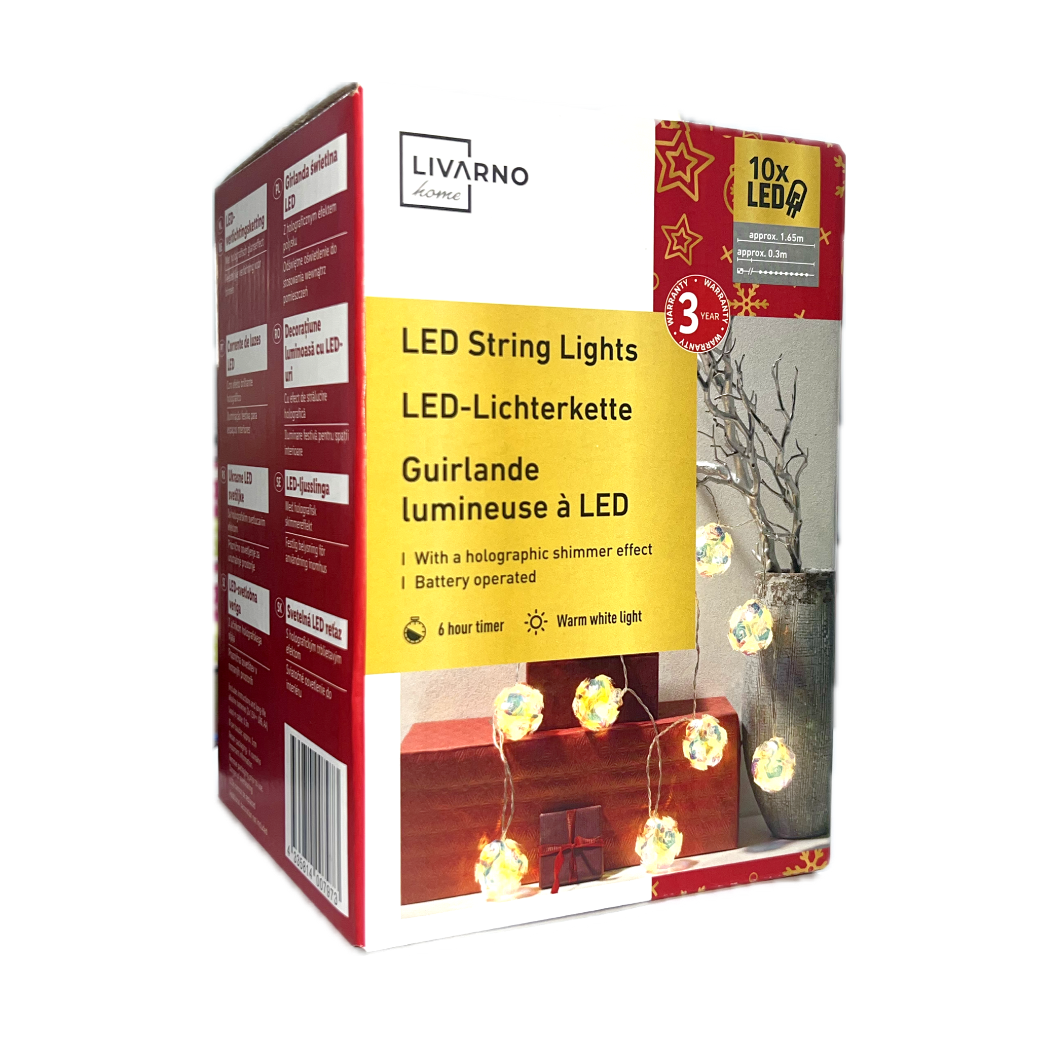 String lights | Holographic shimmer effect | Festive lighting for indoors | 2 x AA Batteries | 6 hour timer | warm light | approx 1,65 m | 10x Led
