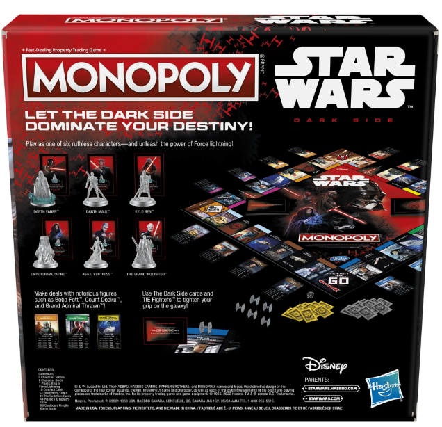 Original Hasbro Gaming Monopoly | Ages 8+ | Dark Side cards feature memorable quotes| 6 zinc tokens | 2-6 game players | 6.35 x 29.21 x 29.21 cm