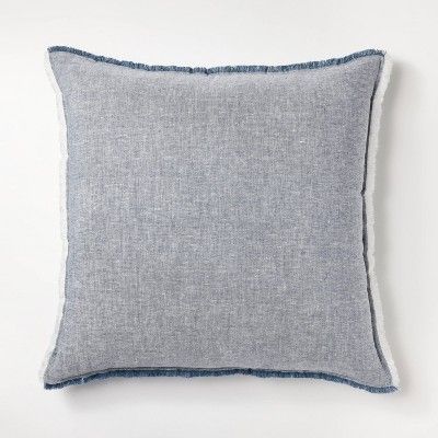 Oversized Blue Linen Toss Pillow with frayed edges – Threshold