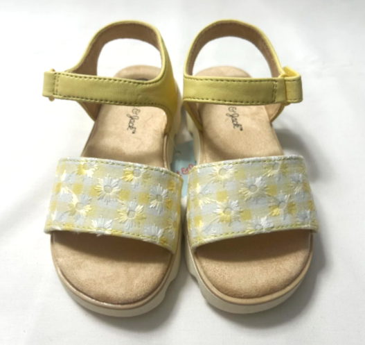 Casual girls’ sandals | yellow floral design | Adjustable Ankle Strap | comfy and breathable | Available in many sizes