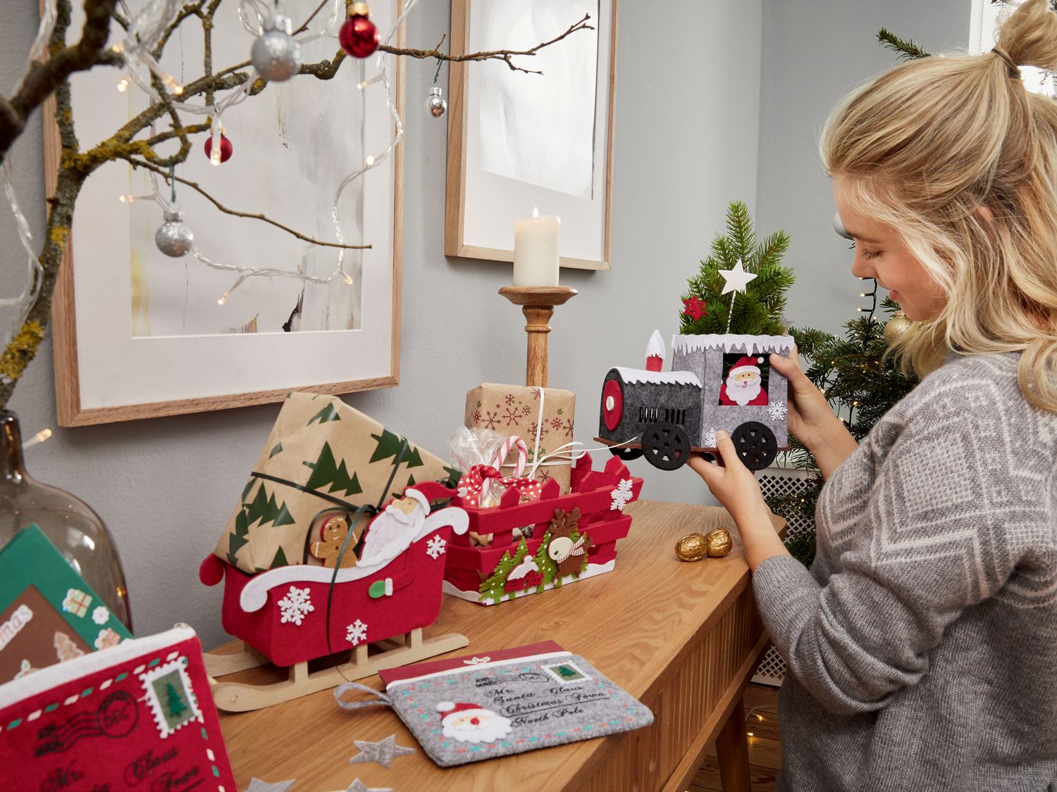 Felt Basket for Christmas Decoration | 18,5x 12,5x 12,5 cm | Complete set sold separately | perfect for decorating and storing candies as basket