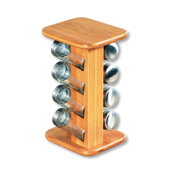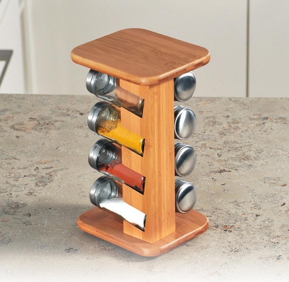 on ball-bearing turntable with 8 empty glasses | 15 x 25.5 x 13 cm | easy rotation and removal | 110ml capacity jars