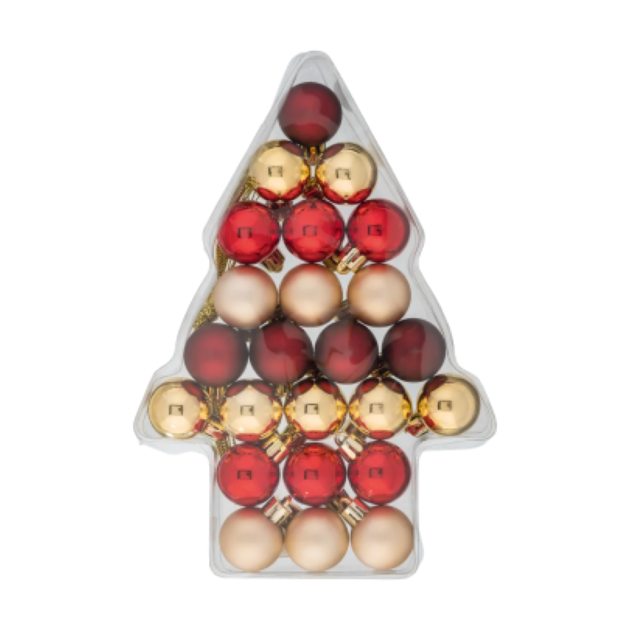 24 pieces ornament mini balls | assorted set | Gold edges and threads | perfect for mini trees in rooms, classes, offices & anywhere | shatterproof plastic